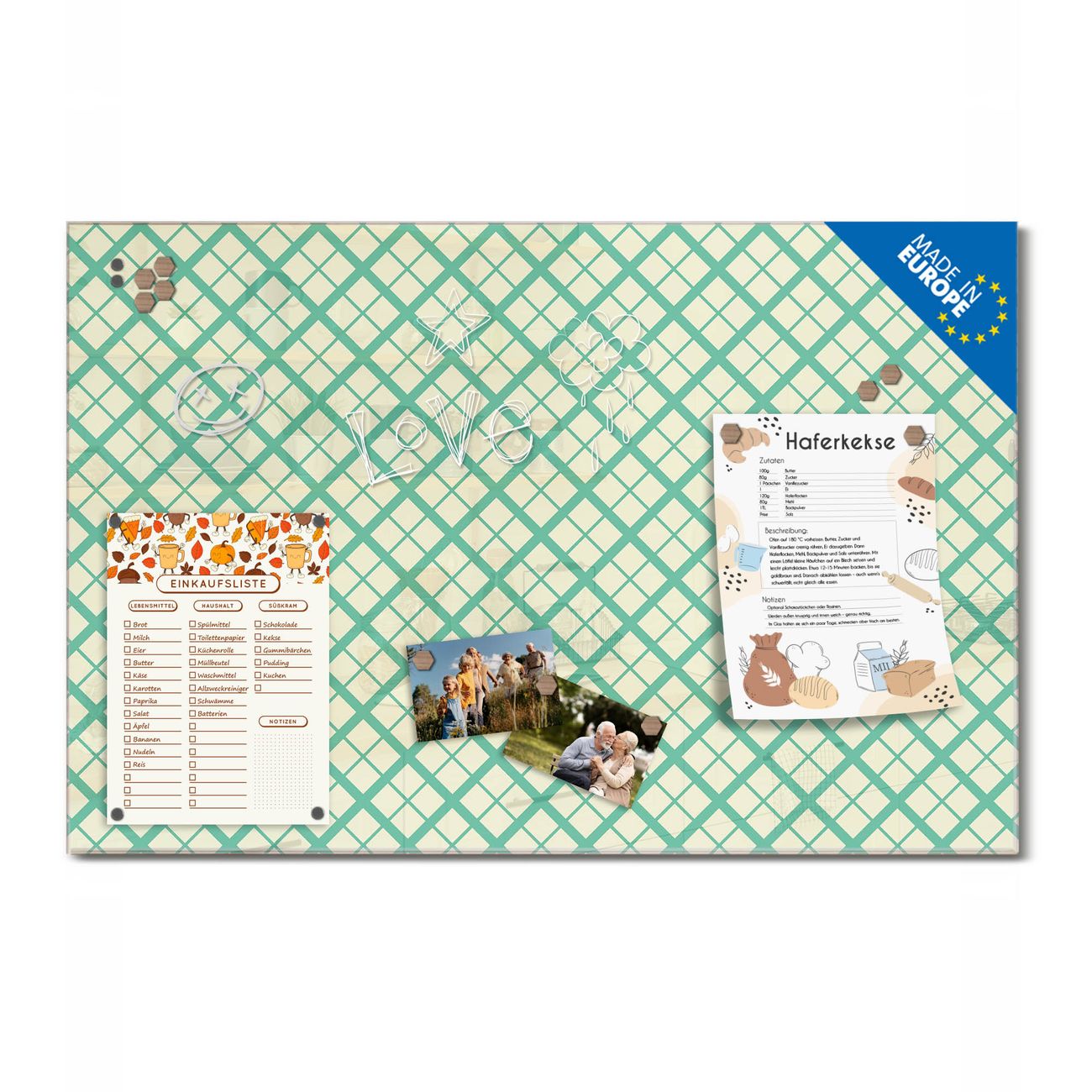 Die banjado Glas Magnettafel mit dem Motiv Motiv Feines Rautenmuster verbindet Funktionalität mit Stil. Sie ersetzt das Zettelchaos durch klare Strukturen und bringt dabei eine warme, natürliche Atmosphäre in Ihr Zuhause. Ob im Büro, in der Küche oder im Eingangsbereich - dieses Design-Board zieht Blicke an und sorgt für Ordnung mit Charakter.