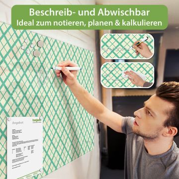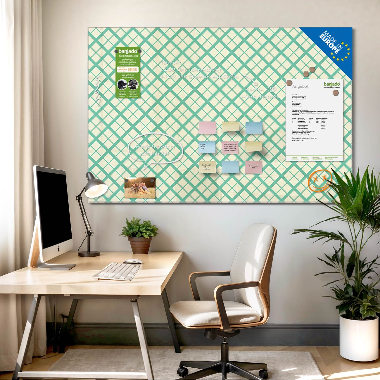 Die banjado Glas Magnettafel mit dem Motiv Motiv Feines Rautenmuster verbindet Funktionalität mit Stil. Sie ersetzt das Zettelchaos durch klare Strukturen und bringt dabei eine warme, natürliche Atmosphäre in Ihr Zuhause. Ob im Büro, in der Küche oder im Eingangsbereich - dieses Design-Board zieht Blicke an und sorgt für Ordnung mit Charakter.