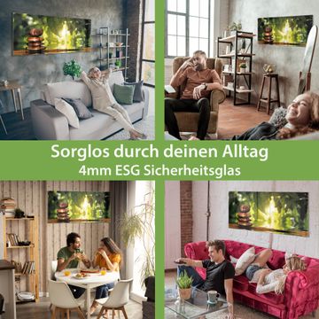 Material: 4mm Sicherheitsglas mit Metallrückwand Eigenschaften: beschreibbar, magnetisch, kratzfest Maße: 120x60x0,6cm, 10,80kg schwer Motiv Nummer 10138 Feng Shui Zubehör: inklusive 4 Neodym-Magnete
