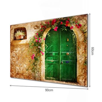 Material: 4mm Sicherheitsglas mit Metallrückwand Eigenschaften: beschreibbar, magnetisch, kratzfest Maße: 90x60x0,6cm, 8,10kg schwer Motiv Nummer 10280 Ferienhaus Zubehör: inklusive 4 Neodym-Magnete