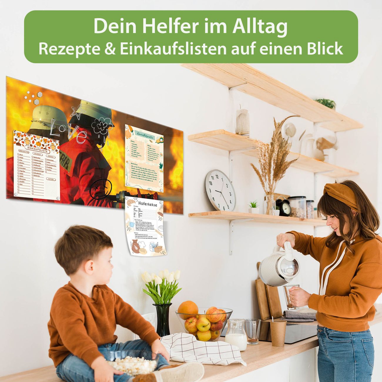 Ein Stück Design, das Ihren Alltag organisiert. Schreiben, heften, inspirieren - alles an einem Ort. Qualität, die man spürt. Montage leicht gemacht. Handwerk mit Herz - veredelt in Sachsen. Einzigartiges Design mit Motiv Motiv Feuer Beschreibbare Glasoberfläche, leicht zu reinigen Starke Magnetkraft durch Stahlrückwand Inklusive 4 Neodym-Magneten Flexible Montageoptionen Handveredelt in Sachsen - Qualität, die bleibt