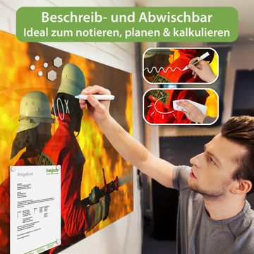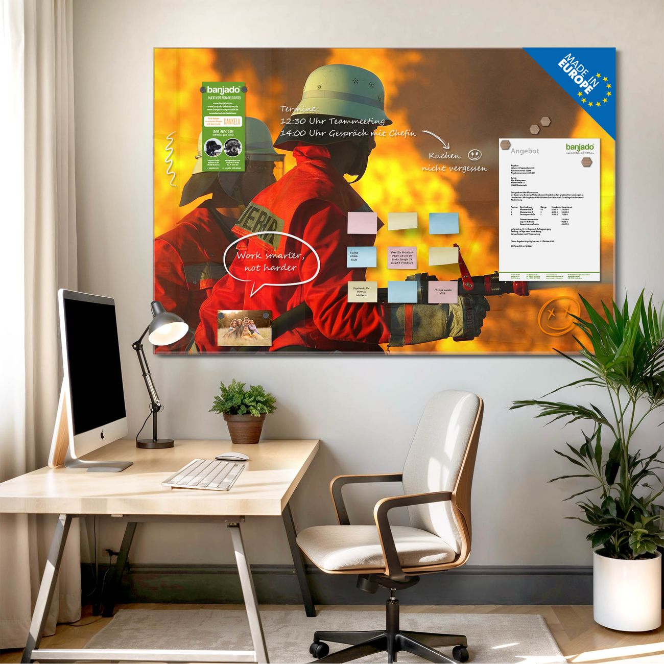 Die banjado Glas Magnettafel mit dem Motiv Motiv Feuer verbindet Funktionalität mit Stil. Sie ersetzt das Zettelchaos durch klare Strukturen und bringt dabei eine warme, natürliche Atmosphäre in Ihr Zuhause. Ob im Büro, in der Küche oder im Eingangsbereich - dieses Design-Board zieht Blicke an und sorgt für Ordnung mit Charakter.