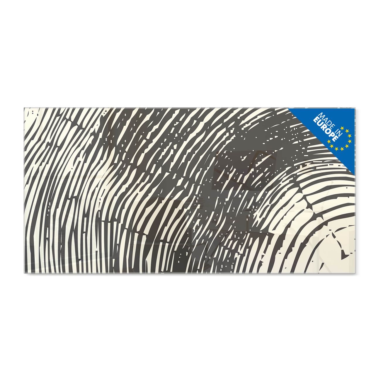 Material: 4mm Sicherheitsglas mit Metallrückwand Eigenschaften: beschreibbar, magnetisch, kratzfest Maße: 100x50x0,6cm, 7,50kg schwer Motiv Nummer 10745 Fingerabdruck Zubehör: inklusive 4 Neodym-Magnete