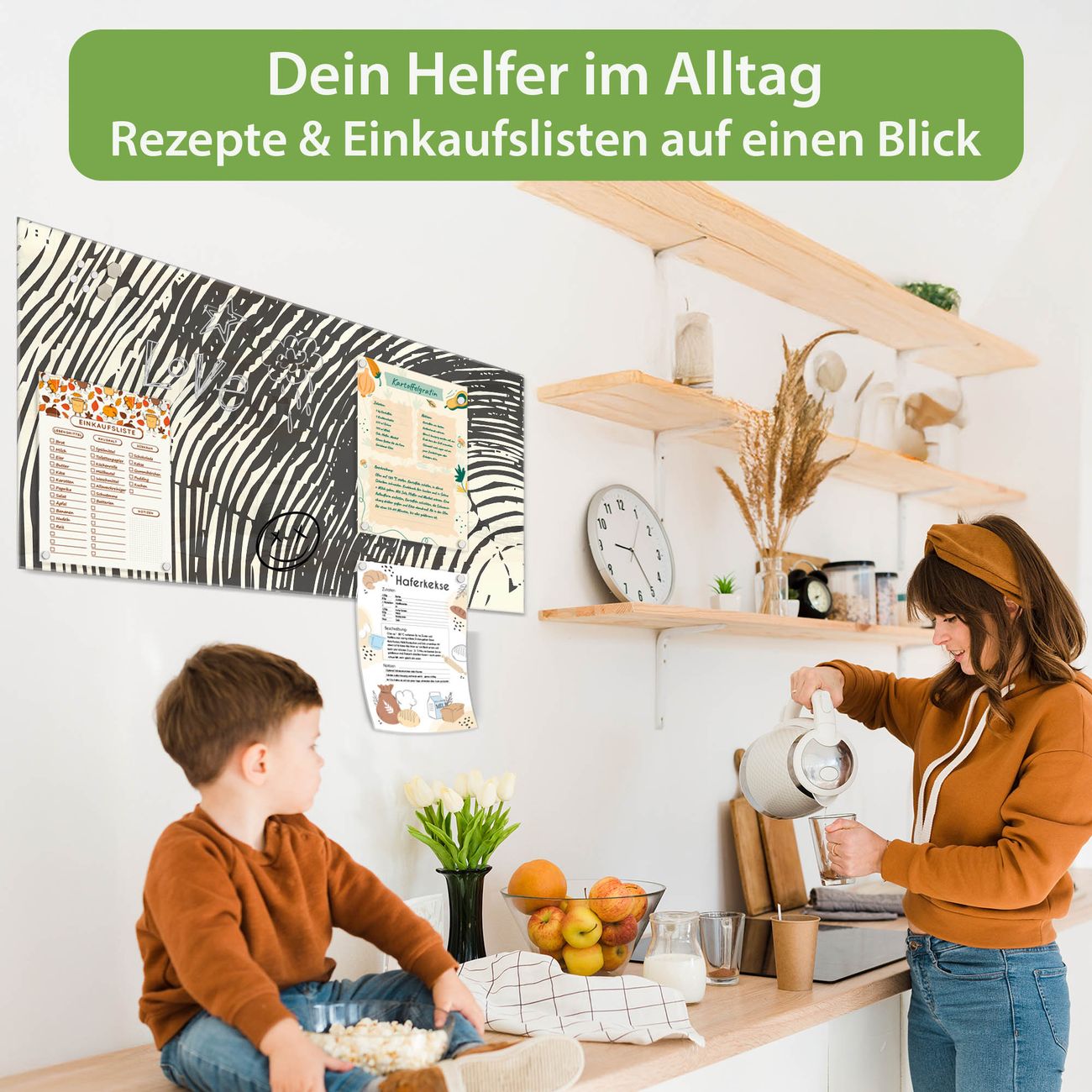 Auf der glatten Glasoberfläche lassen sich Termine, Rezepte oder Notizen ganz einfach mit Kreidestiften festhalten und rückstandslos entfernen. Starke Neodym-Magnete halten Ihre wichtigsten Erinnerungen sicher an Ort und Stelle. So entsteht Ihre ganz persönliche Ideenwand - jeden Tag neu.