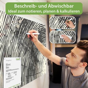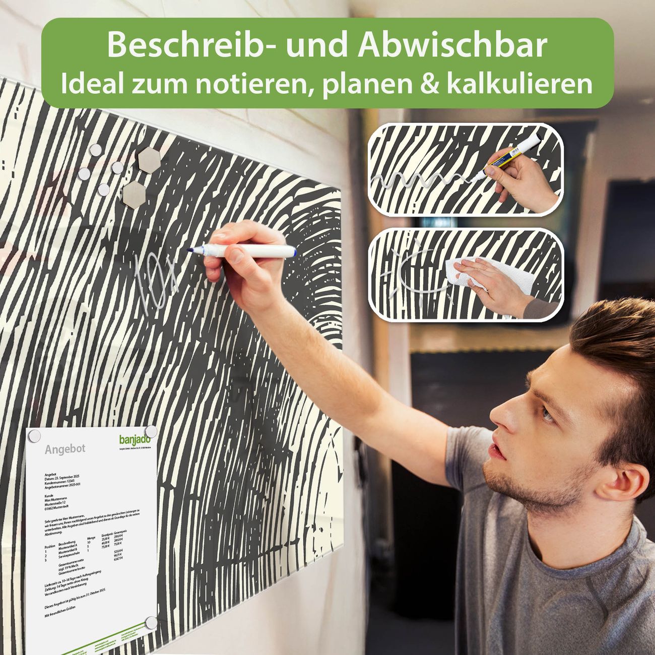 Auf der glatten Glasoberfläche lassen sich Termine, Rezepte oder Notizen ganz einfach mit Kreidestiften festhalten und rückstandslos entfernen. Starke Neodym-Magnete halten Ihre wichtigsten Erinnerungen sicher an Ort und Stelle. So entsteht Ihre ganz persönliche Ideenwand - jeden Tag neu.