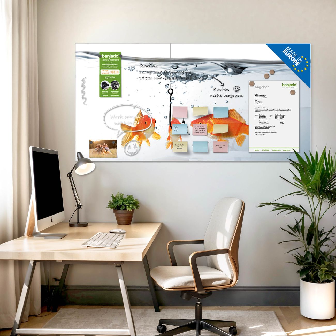 Die banjado Glas Magnettafel mit dem Motiv Motiv Fische verbindet Funktionalität mit Stil. Sie ersetzt das Zettelchaos durch klare Strukturen und bringt dabei eine warme, natürliche Atmosphäre in Ihr Zuhause. Ob im Büro, in der Küche oder im Eingangsbereich - dieses Design-Board zieht Blicke an und sorgt für Ordnung mit Charakter.