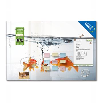 Material: 4mm Sicherheitsglas mit Metallrückwand Eigenschaften: beschreibbar, magnetisch, kratzfest Maße: 120x80x0,6cm, 14,40kg schwer Motiv Nummer 10184 Fische Zubehör: inklusive 4 Neodym-Magnete