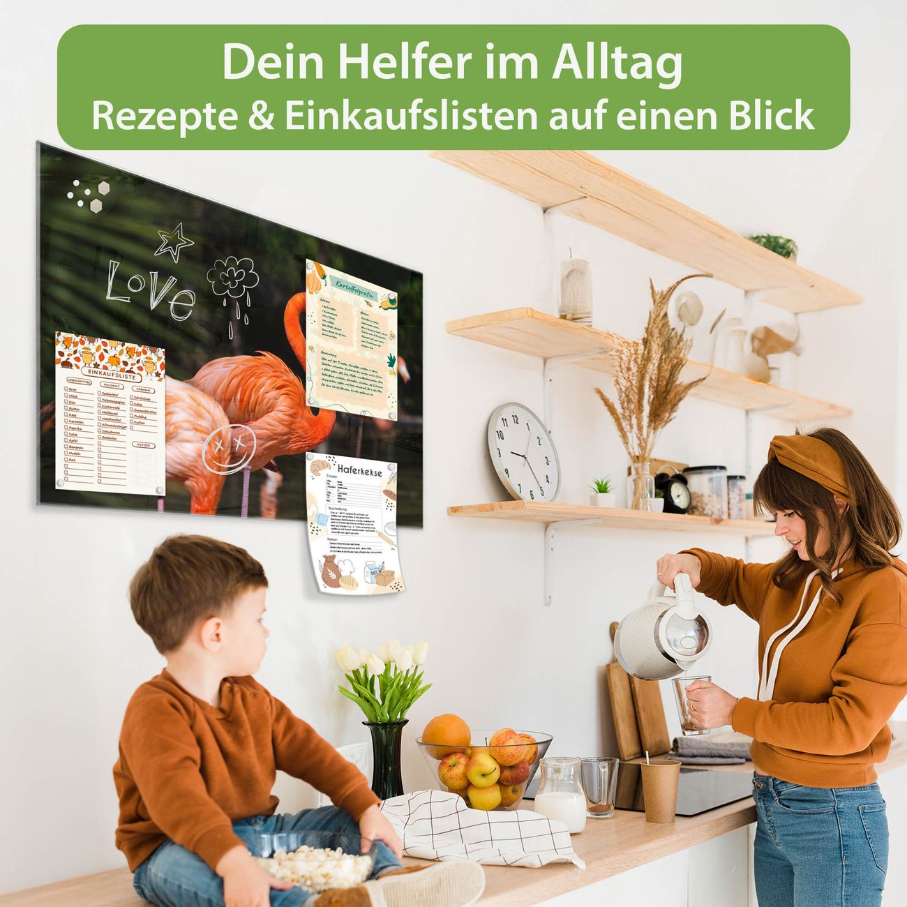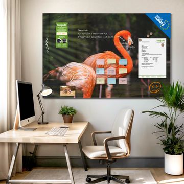 Die banjado Glas Magnettafel mit dem Motiv Motiv Flamingo verbindet Funktionalität mit Stil. Sie ersetzt das Zettelchaos durch klare Strukturen und bringt dabei eine warme, natürliche Atmosphäre in Ihr Zuhause. Ob im Büro, in der Küche oder im Eingangsbereich - dieses Design-Board zieht Blicke an und sorgt für Ordnung mit Charakter.