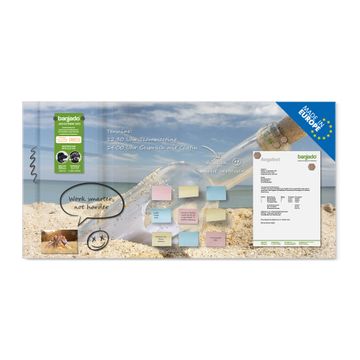 Die banjado Glas Magnettafel mit dem Motiv Motiv Flaschenpost verbindet Funktionalität mit Stil. Sie ersetzt das Zettelchaos durch klare Strukturen und bringt dabei eine warme, natürliche Atmosphäre in Ihr Zuhause. Ob im Büro, in der Küche oder im Eingangsbereich - dieses Design-Board zieht Blicke an und sorgt für Ordnung mit Charakter.