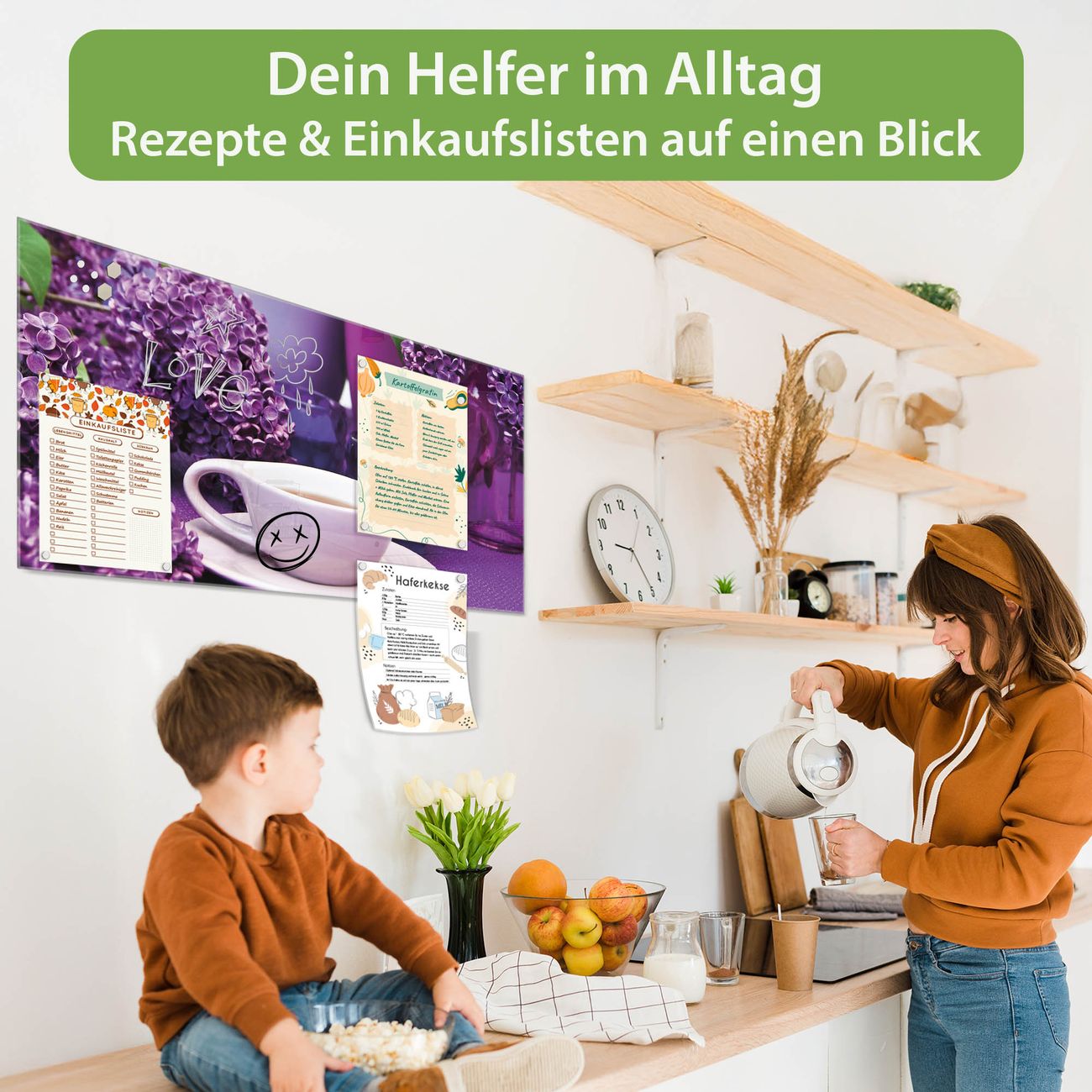 Auf der glatten Glasoberfläche lassen sich Termine, Rezepte oder Notizen ganz einfach mit Kreidestiften festhalten und rückstandslos entfernen. Starke Neodym-Magnete halten Ihre wichtigsten Erinnerungen sicher an Ort und Stelle. So entsteht Ihre ganz persönliche Ideenwand - jeden Tag neu.