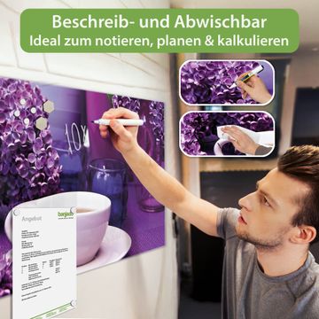 Die banjado Glas Magnettafel mit dem Motiv Motiv Flieder verbindet Funktionalität mit Stil. Sie ersetzt das Zettelchaos durch klare Strukturen und bringt dabei eine warme, natürliche Atmosphäre in Ihr Zuhause. Ob im Büro, in der Küche oder im Eingangsbereich - dieses Design-Board zieht Blicke an und sorgt für Ordnung mit Charakter.