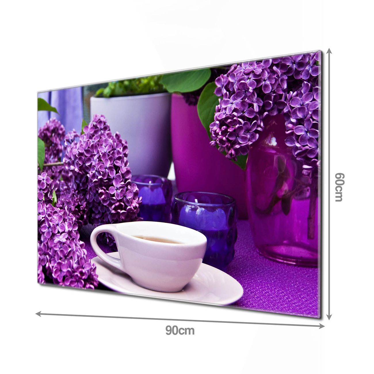 Material: 4mm Sicherheitsglas mit Metallrückwand Eigenschaften: beschreibbar, magnetisch, kratzfest Maße: 90x60x0,6cm, 8,10kg schwer Motiv Nummer 10085 Flieder Zubehör: inklusive 4 Neodym-Magnete