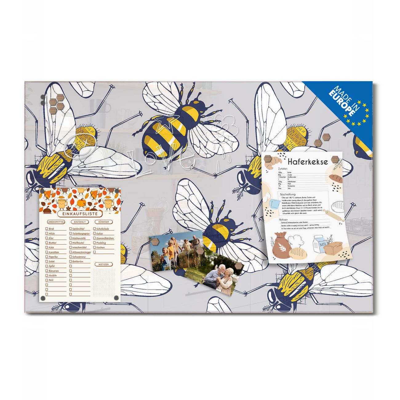 Glas Magnettafel im Querformat Motiv Fliegen und Bienen