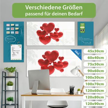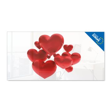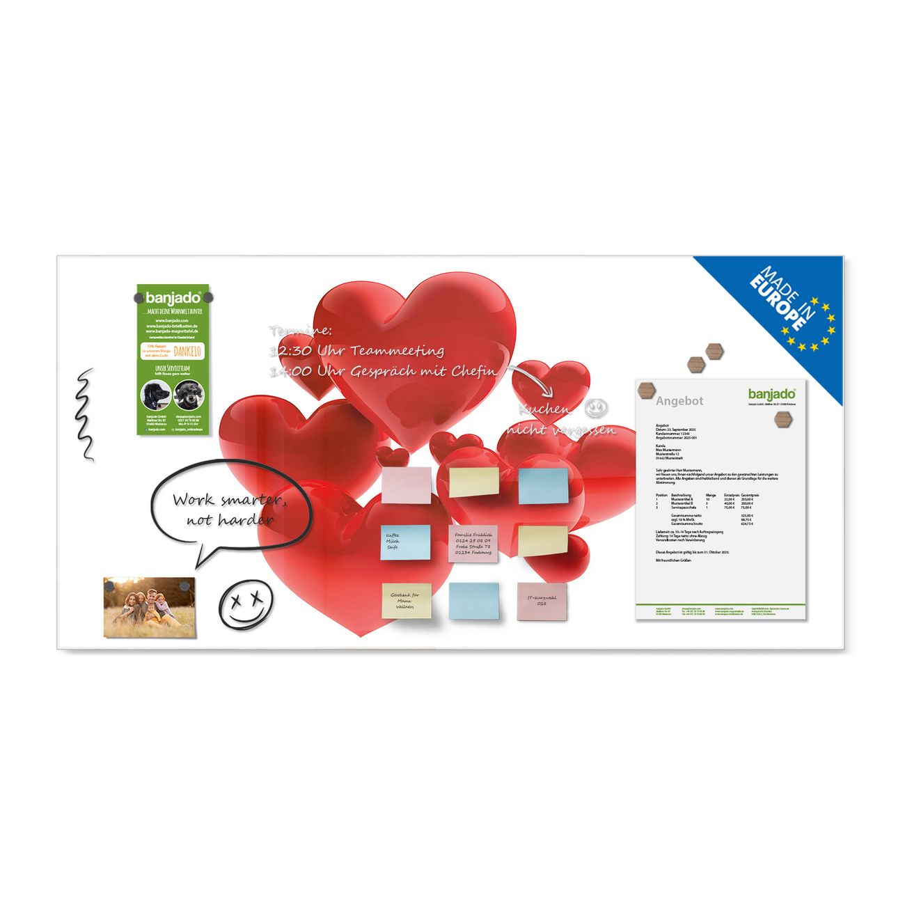 Glas Magnettafel im Querformat Motiv Fliegende Herzen