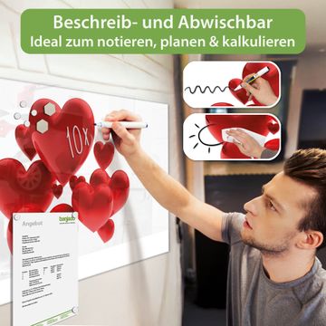 Die banjado Glas Magnettafel mit dem Motiv Motiv Fliegende Herzen verbindet Funktionalität mit Stil. Sie ersetzt das Zettelchaos durch klare Strukturen und bringt dabei eine warme, natürliche Atmosphäre in Ihr Zuhause. Ob im Büro, in der Küche oder im Eingangsbereich - dieses Design-Board zieht Blicke an und sorgt für Ordnung mit Charakter.