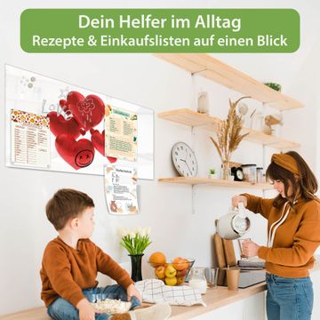 Auf der glatten Glasoberfläche lassen sich Termine, Rezepte oder Notizen ganz einfach mit Kreidestiften festhalten und rückstandslos entfernen. Starke Neodym-Magnete halten Ihre wichtigsten Erinnerungen sicher an Ort und Stelle. So entsteht Ihre ganz persönliche Ideenwand - jeden Tag neu.