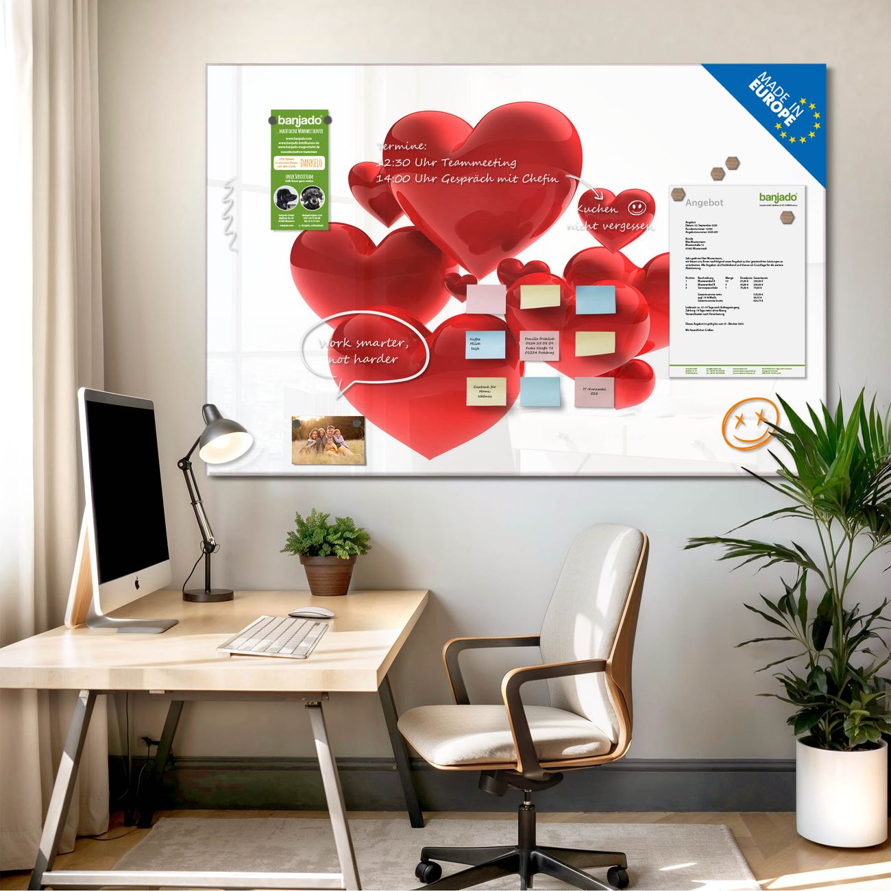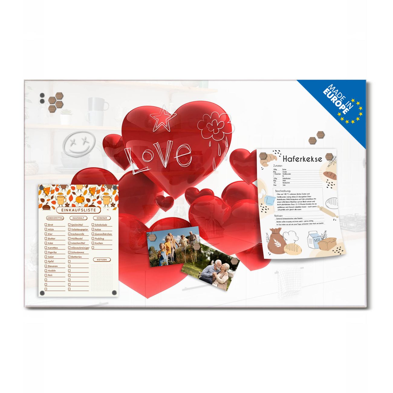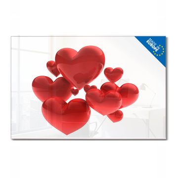 Glas Magnettafel im Querformat Motiv Fliegende Herzen
