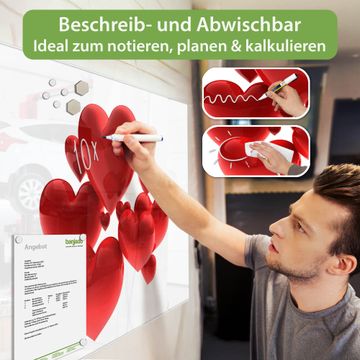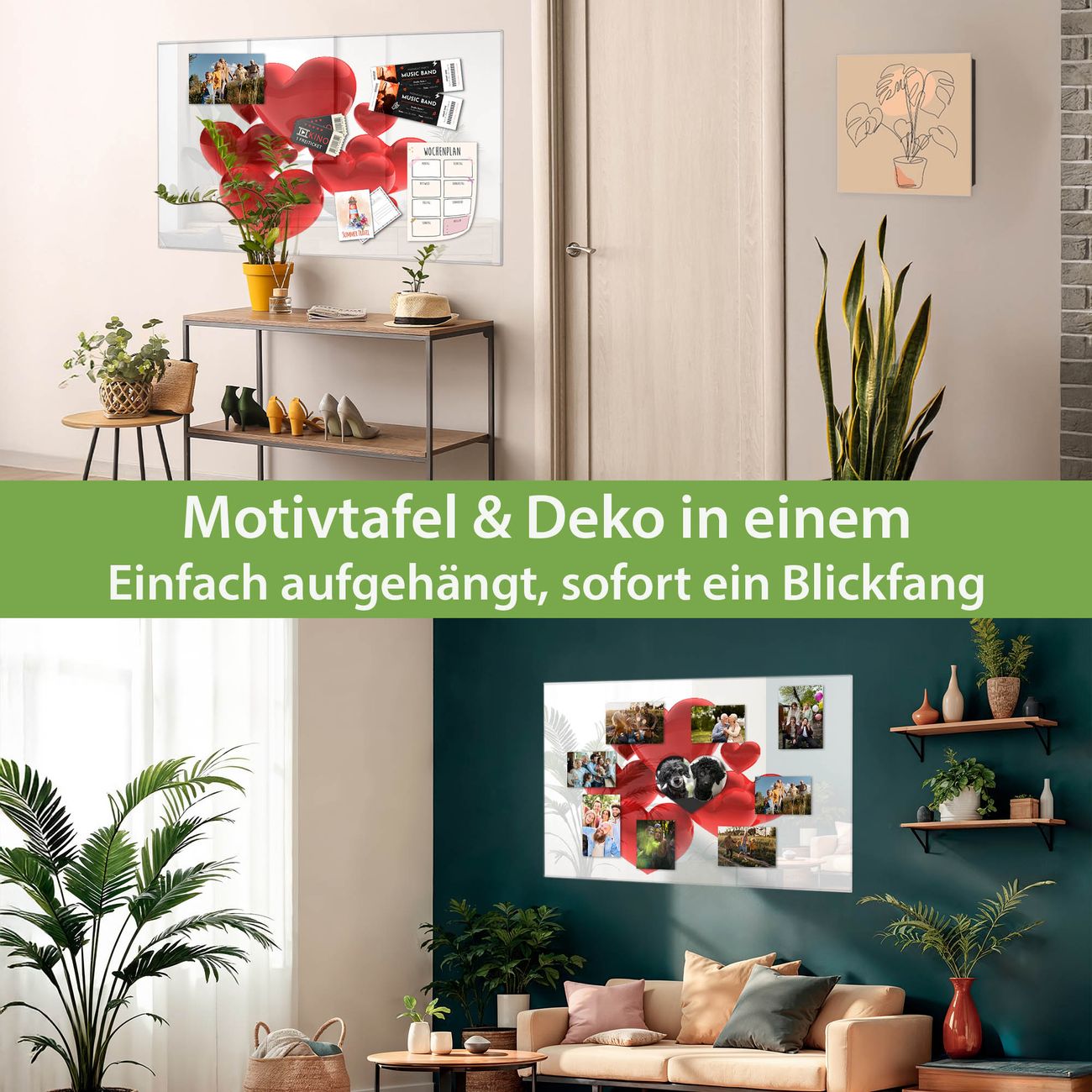 Die banjado Glas Magnettafel mit dem Motiv Motiv Fliegende Herzen verbindet Funktionalität mit Stil. Sie ersetzt das Zettelchaos durch klare Strukturen und bringt dabei eine warme, natürliche Atmosphäre in Ihr Zuhause. Ob im Büro, in der Küche oder im Eingangsbereich - dieses Design-Board zieht Blicke an und sorgt für Ordnung mit Charakter.
