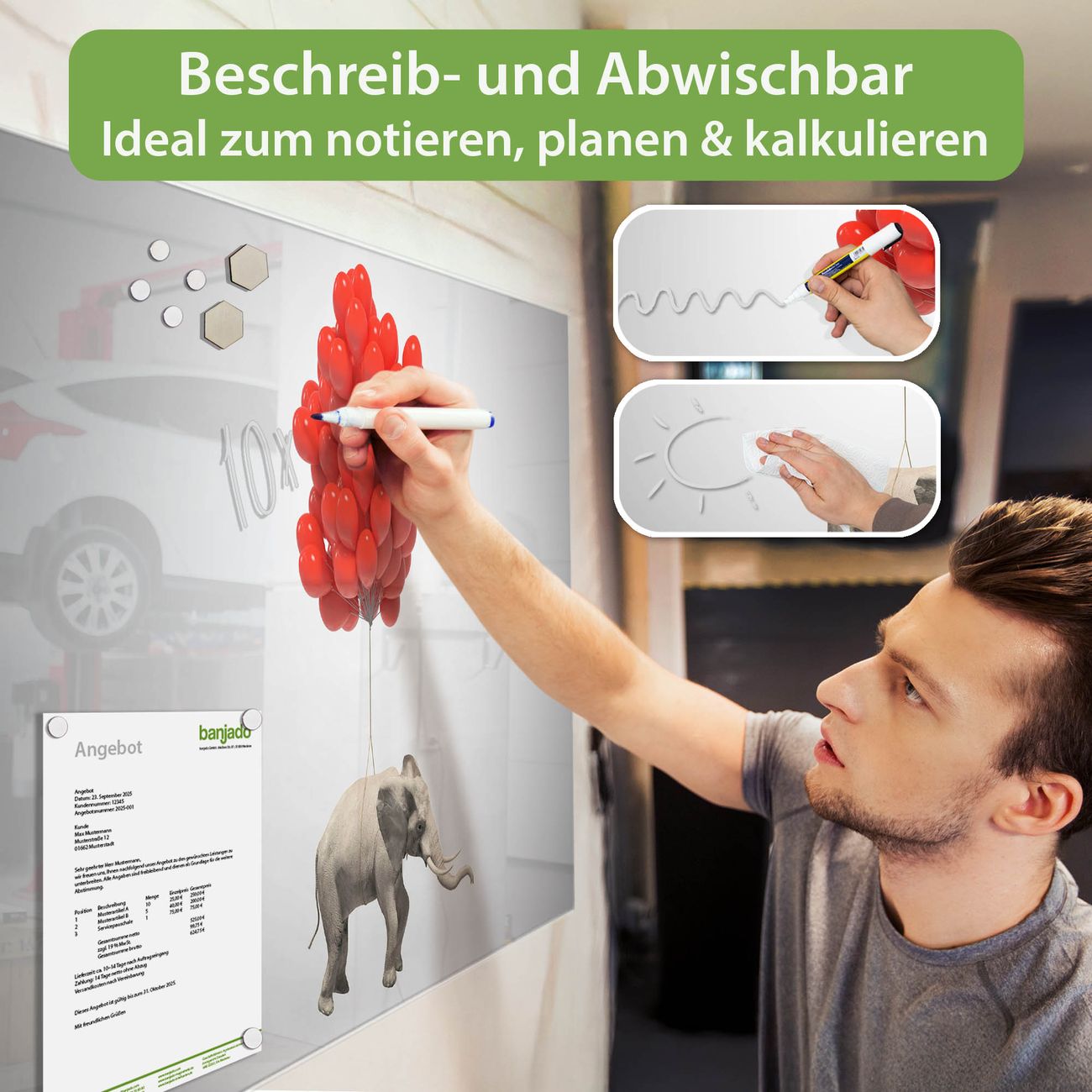 Bitte beachten Sie, dass ausschliessliche spezielle Magnete an der Glastafel haften. Wir empfehlen banjado Neodym Magnete, diese sind durch uns auf Wirksamkeit geprüft.