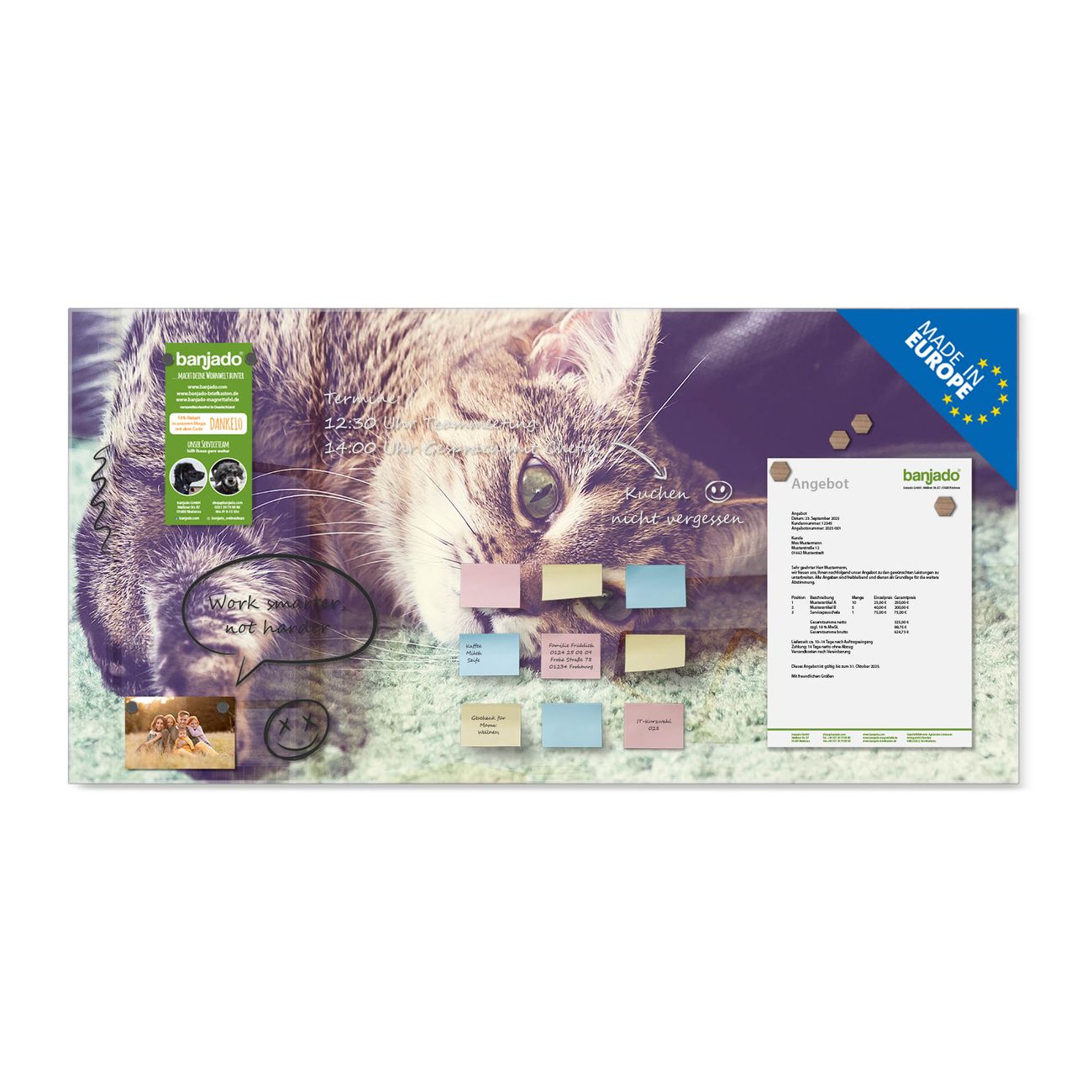 Bitte beachten Sie, dass ausschliessliche spezielle Magnete an der Glastafel haften. Wir empfehlen banjado Neodym Magnete, diese sind durch uns auf Wirksamkeit geprüft.