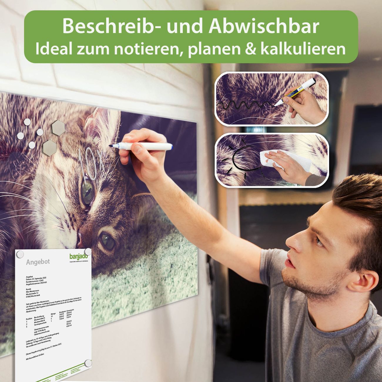 Jede Glas Magnettafel wird in unserer Werkstatt von Hand gefertigt und sorgfältig geprüft. So erhalten Sie ein echtes Qualitätsprodukt, das Funktion und Ästhetik perfekt vereint.?? Warum banjado?
