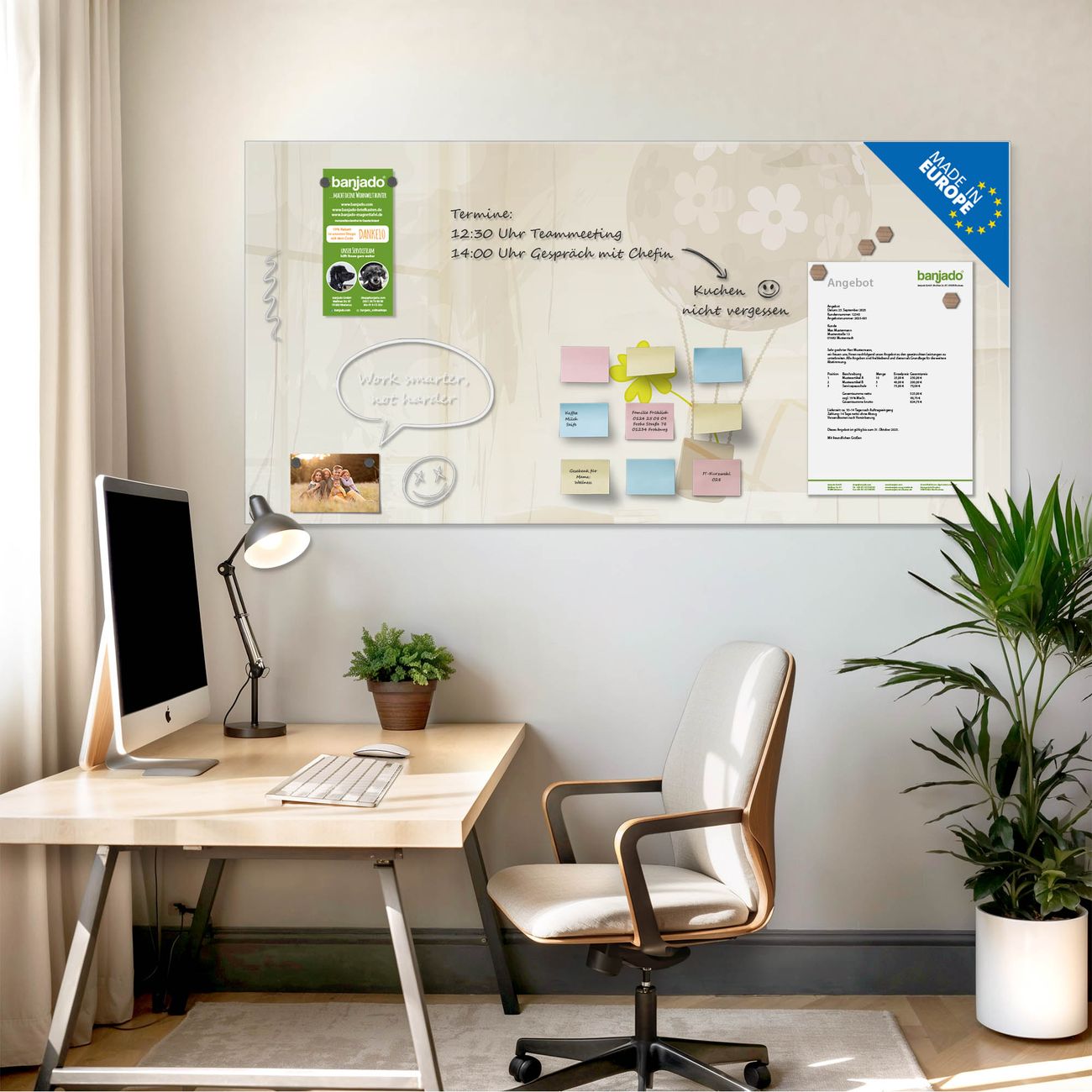 Die banjado Glas Magnettafel mit dem Motiv Motiv Flüchtiges Glück verbindet Funktionalität mit Stil. Sie ersetzt das Zettelchaos durch klare Strukturen und bringt dabei eine warme, natürliche Atmosphäre in Ihr Zuhause. Ob im Büro, in der Küche oder im Eingangsbereich - dieses Design-Board zieht Blicke an und sorgt für Ordnung mit Charakter.