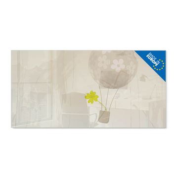 Material: 4mm Sicherheitsglas mit Metallrückwand Eigenschaften: beschreibbar, magnetisch, kratzfest Maße: 120x60x0,6cm, 10,80kg schwer Motiv Nummer 11248 Flüchtiges Glück Zubehör: inklusive 4 Neodym-Magnete