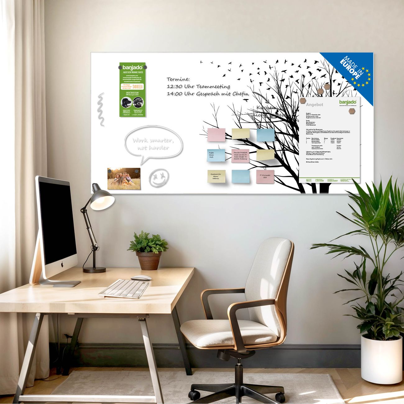 Die banjado Glas Magnettafel mit dem Motiv Motiv Fortfliegen verbindet Funktionalität mit Stil. Sie ersetzt das Zettelchaos durch klare Strukturen und bringt dabei eine warme, natürliche Atmosphäre in Ihr Zuhause. Ob im Büro, in der Küche oder im Eingangsbereich - dieses Design-Board zieht Blicke an und sorgt für Ordnung mit Charakter.