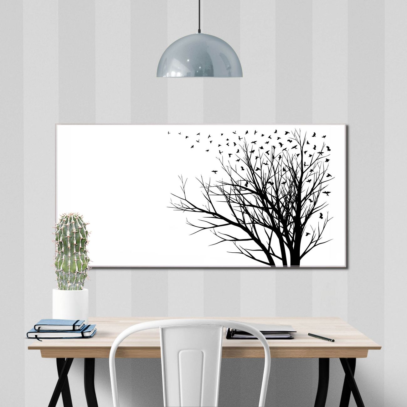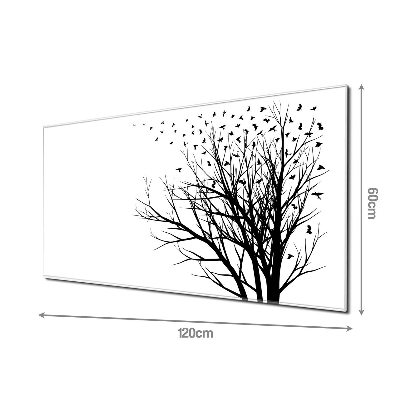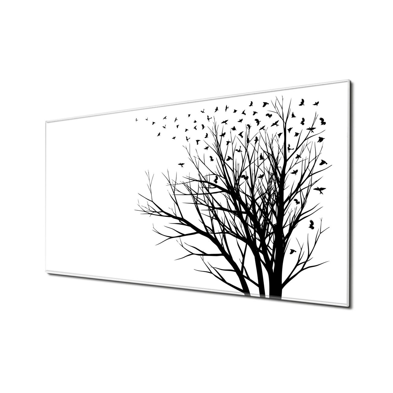 Material: 4mm Sicherheitsglas mit Metallrückwand Eigenschaften: beschreibbar, magnetisch, kratzfest Maße: 120x60x0,6cm, 10,80kg schwer Motiv Nummer 10761 Fortfliegen Zubehör: inklusive 4 Neodym-Magnete
