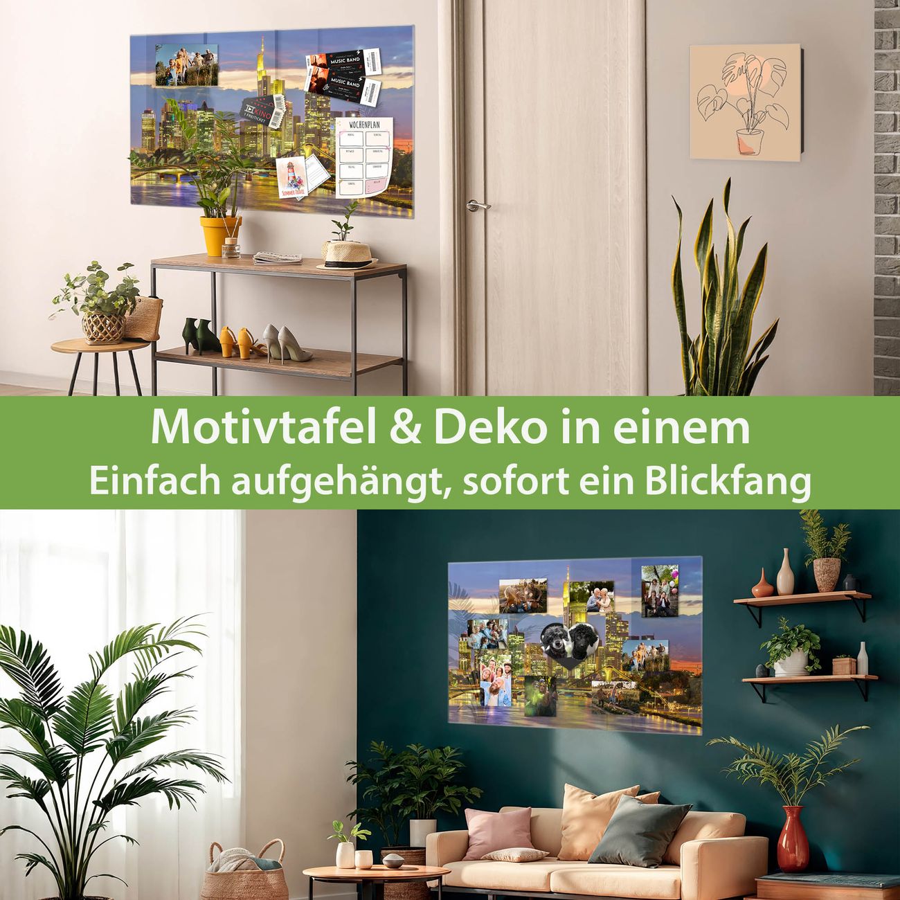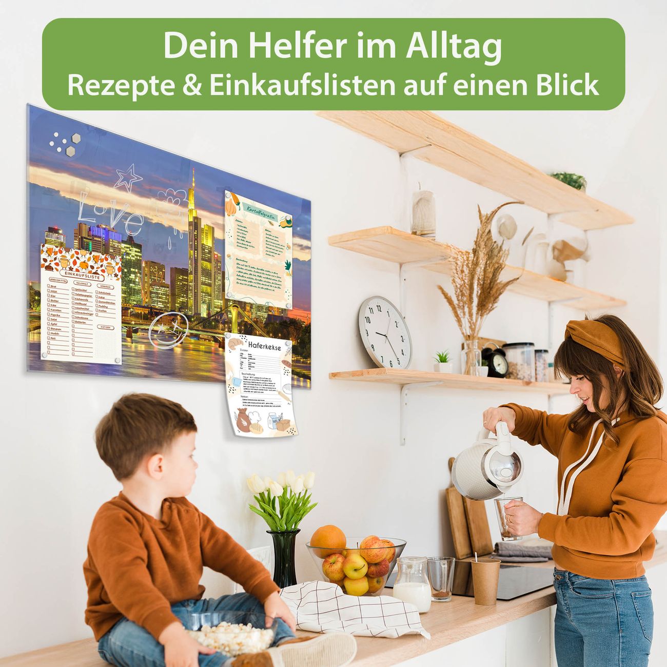 Ein Stück Design, das Ihren Alltag organisiert. Schreiben, heften, inspirieren - alles an einem Ort. Qualität, die man spürt. Montage leicht gemacht. Handwerk mit Herz - veredelt in Sachsen. Einzigartiges Design mit Motiv Motiv Frankfurt Main Beschreibbare Glasoberfläche, leicht zu reinigen Starke Magnetkraft durch Stahlrückwand Inklusive 4 Neodym-Magneten Flexible Montageoptionen Handveredelt in Sachsen - Qualität, die bleibt