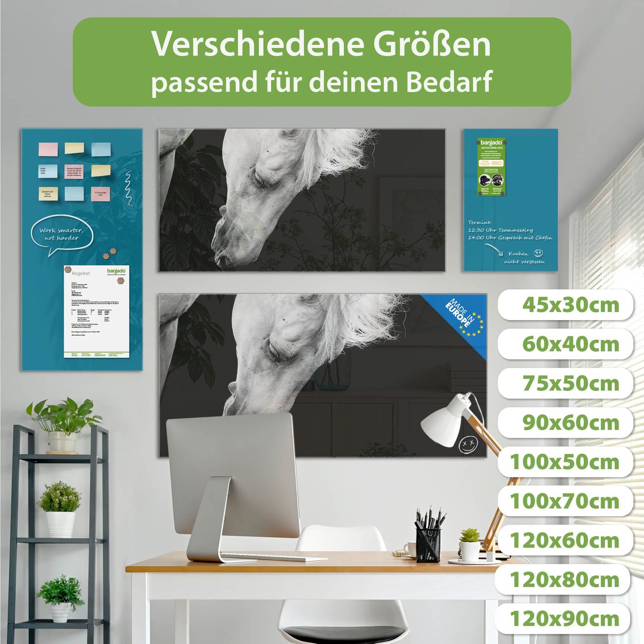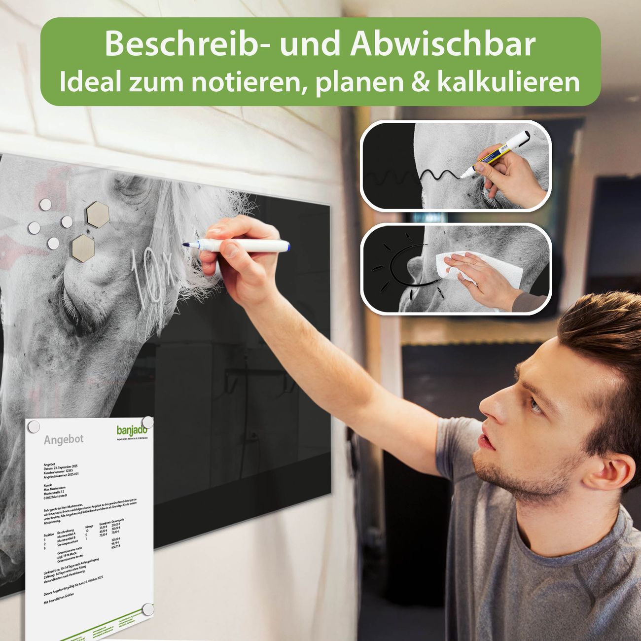 Bitte beachten Sie, dass ausschliessliche spezielle Magnete an der Glastafel haften. Wir empfehlen banjado Neodym Magnete, diese sind durch uns auf Wirksamkeit geprüft.