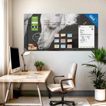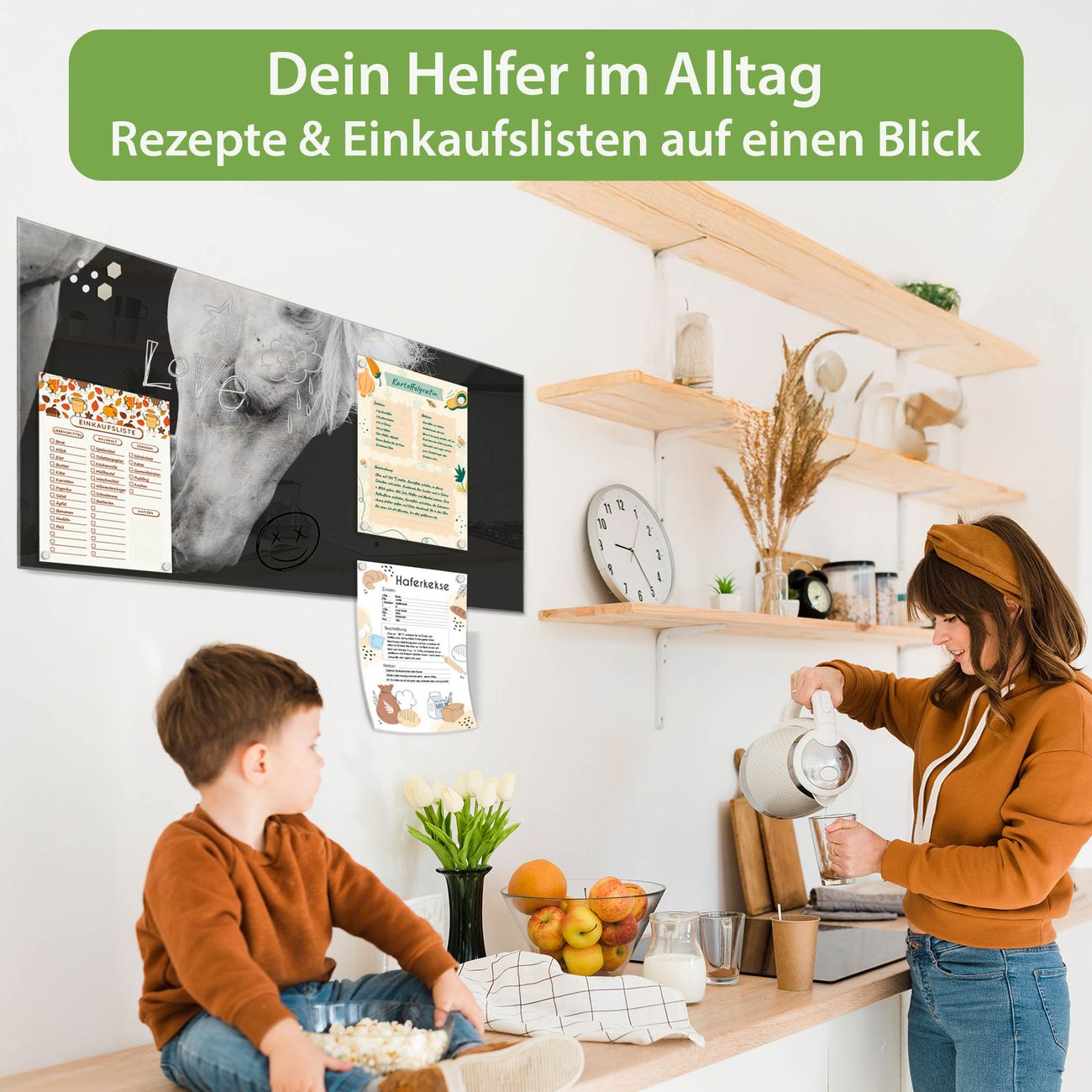 Auf der glatten Glasoberfläche lassen sich Termine, Rezepte oder Notizen ganz einfach mit Kreidestiften festhalten und rückstandslos entfernen. Starke Neodym-Magnete halten Ihre wichtigsten Erinnerungen sicher an Ort und Stelle. So entsteht Ihre ganz persönliche Ideenwand - jeden Tag neu.