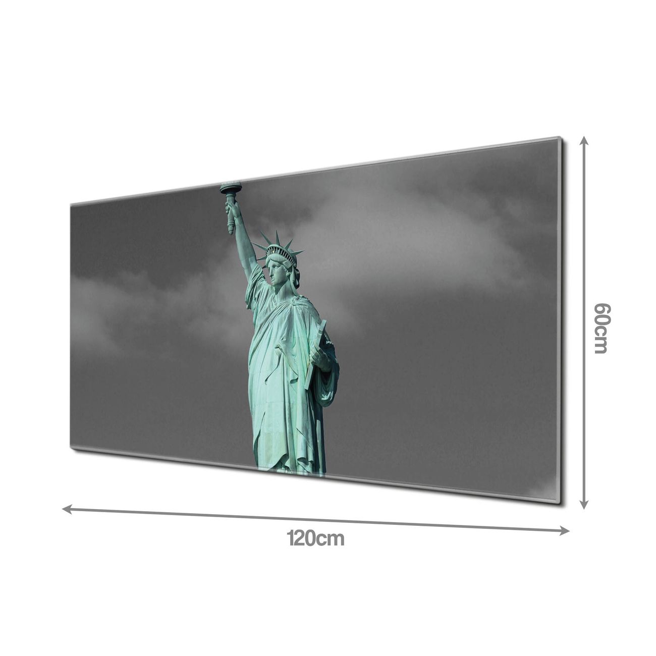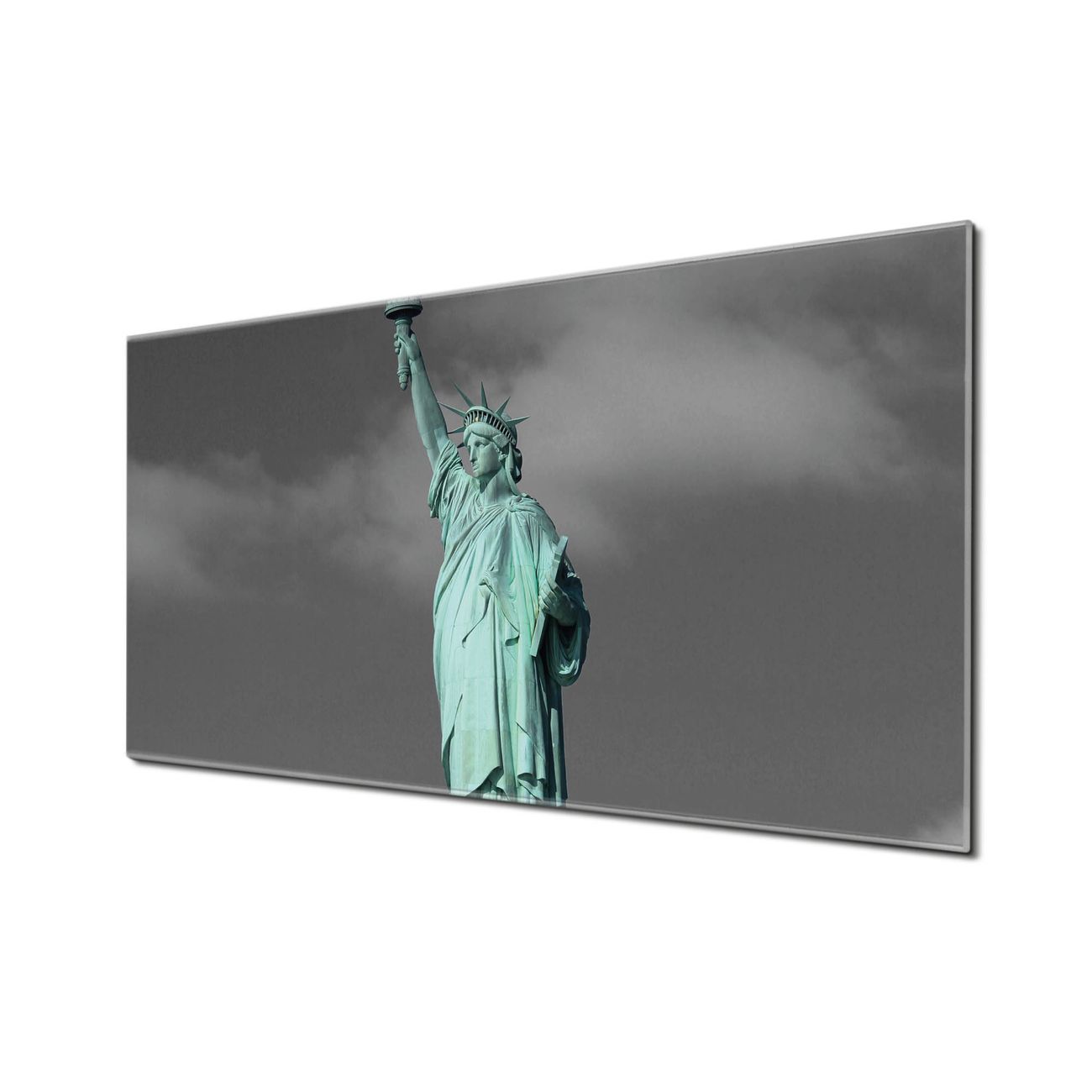 Material: 4mm Sicherheitsglas mit Metallrückwand Eigenschaften: beschreibbar, magnetisch, kratzfest Maße: 120x60x0,6cm, 10,80kg schwer Motiv Nummer 10173 Freiheitsstatue Zubehör: inklusive 4 Neodym-Magnete