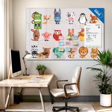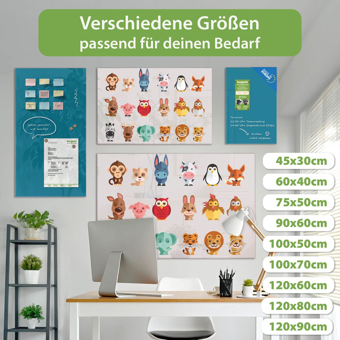 Das Magnetboard besteht aus gehärtetem Glas, die Rückwand aus einem magnetischen Stahlblech. Durch die superflache Bauweise haben Sie die Wahl aus einer Vielzahl von Befestigungsmöglichkeiten. Sie können die Magnettafel mit einem Montagekleber superflach an die Wand kleben oder Sie wählen eines unserer passenden Befestigungssets, welches eine optimale Montage garantiert. Die Magnetwand besteht aus zertifiziertem Sicherheitsglas. Durch die mitgelieferten 4 Neodym-Magnete ist Ihre Glas Magnettafel sofort einsatzbereit. Wichtige Notizen und Informationen können Sie einfach mit Kreidestiften auf die Glasmagnettafel schreiben und rückstandslos wieder entfernen.