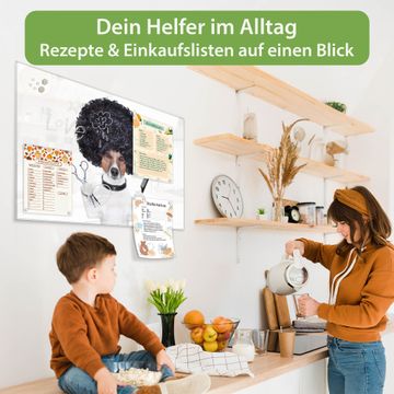 Auf der glatten Glasoberfläche lassen sich Termine, Rezepte oder Notizen ganz einfach mit Kreidestiften festhalten und rückstandslos entfernen. Starke Neodym-Magnete halten Ihre wichtigsten Erinnerungen sicher an Ort und Stelle. So entsteht Ihre ganz persönliche Ideenwand - jeden Tag neu.