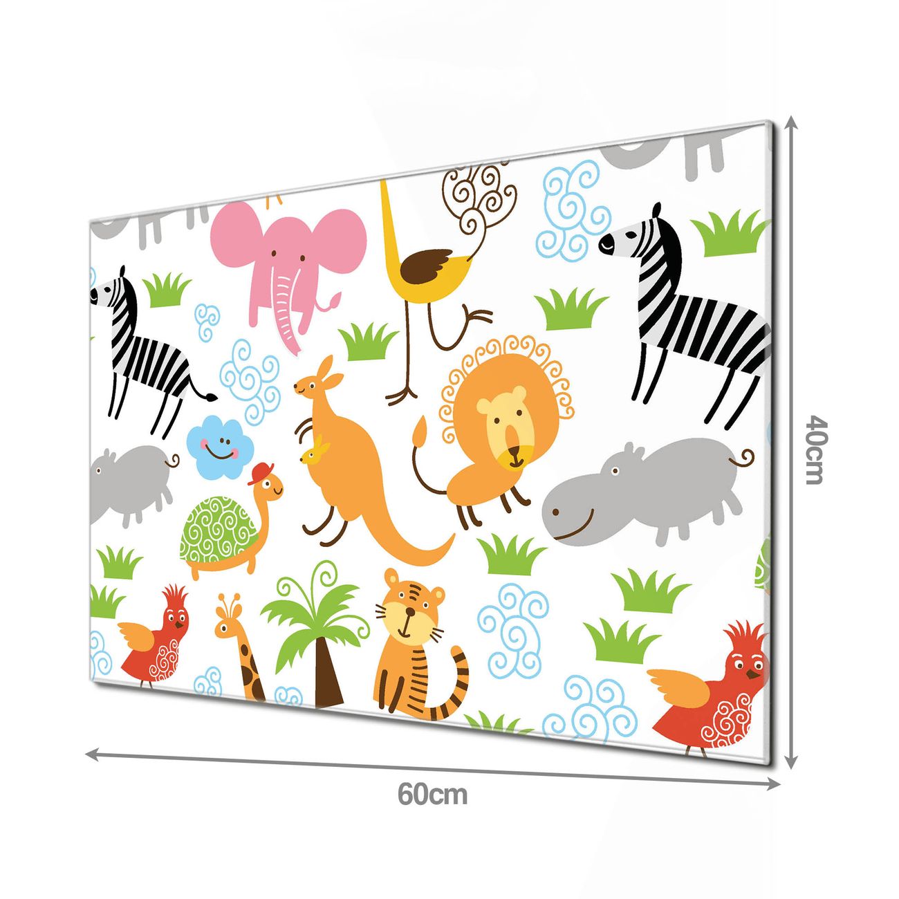 Material  4mm Sicherheitsglas mit Metallrückwand Eigenschaften  beschreibbar, magnetisch, kratzfest Maße  60x40x0,6cm, 3,6kg schwer Motiv  Nummer 11279 Fröhliche Tiere Zubehör  inklusive 4 Neodym-Magnete
