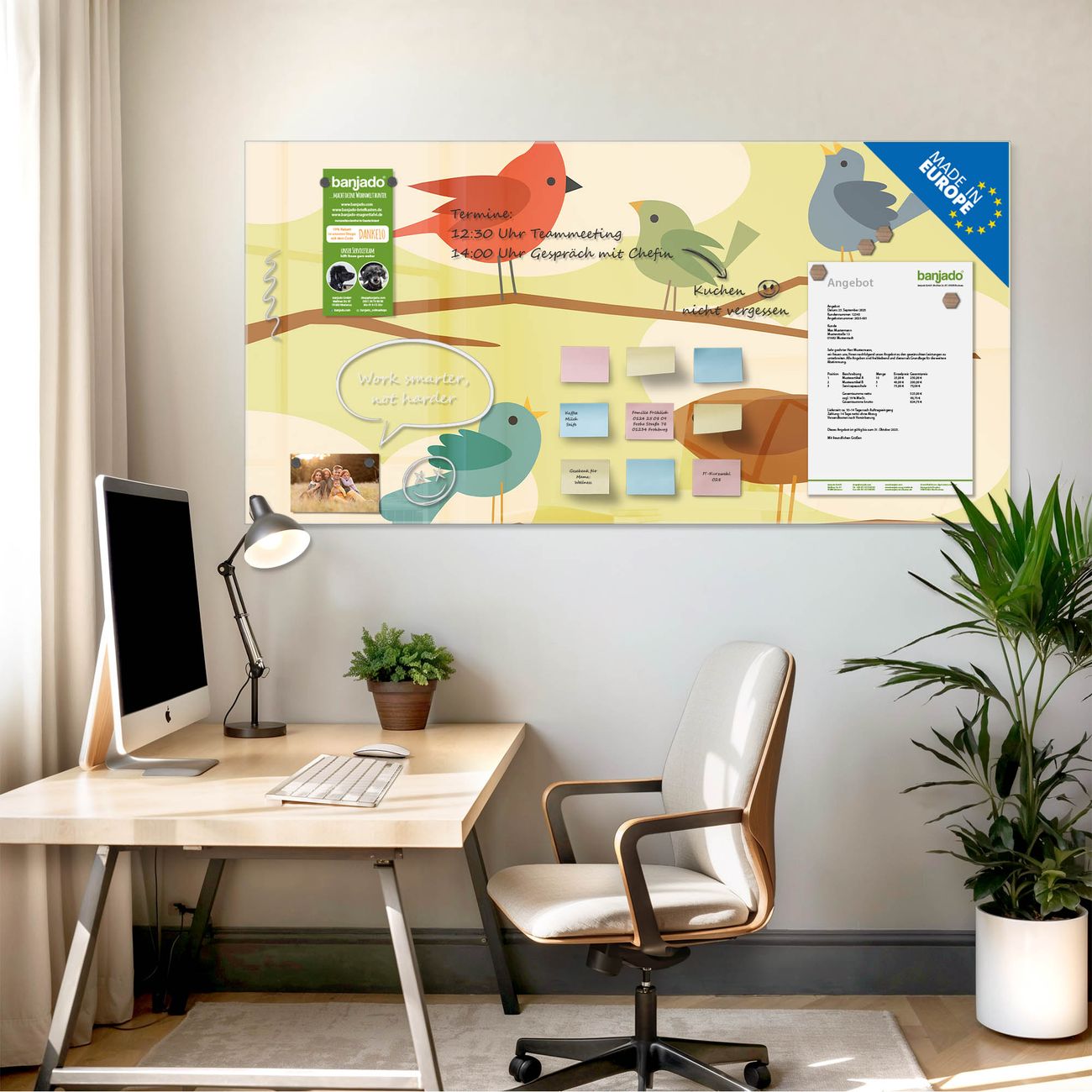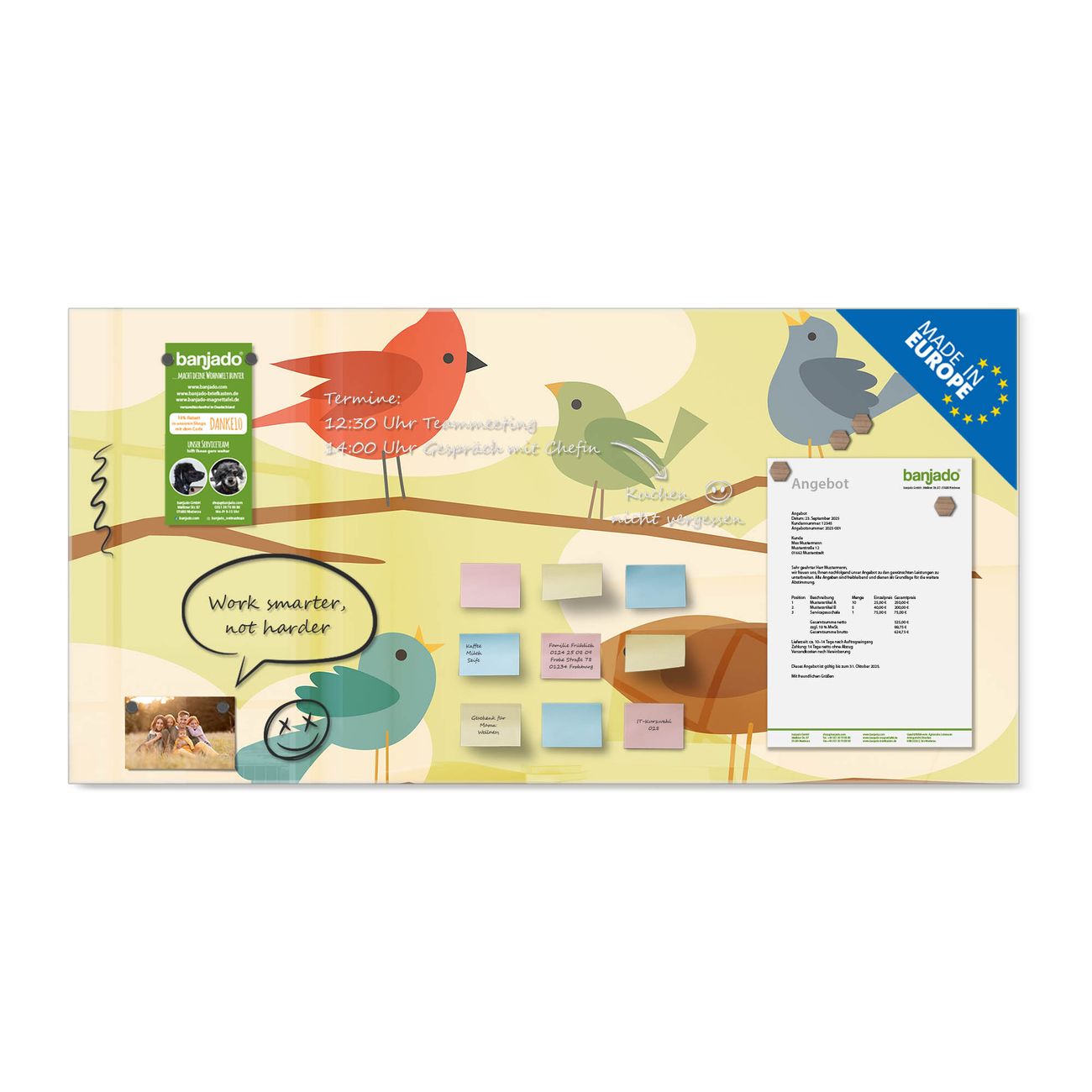 Glas Magnettafel im Querformat Motiv Fünf Vögel