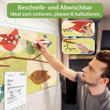Die banjado Glas Magnettafel mit dem Motiv Motiv Fünf Vögel verbindet Funktionalität mit Stil. Sie ersetzt das Zettelchaos durch klare Strukturen und bringt dabei eine warme, natürliche Atmosphäre in Ihr Zuhause. Ob im Büro, in der Küche oder im Eingangsbereich - dieses Design-Board zieht Blicke an und sorgt für Ordnung mit Charakter.