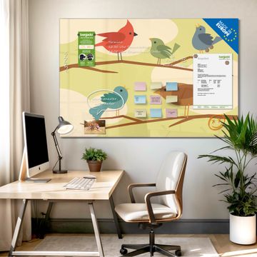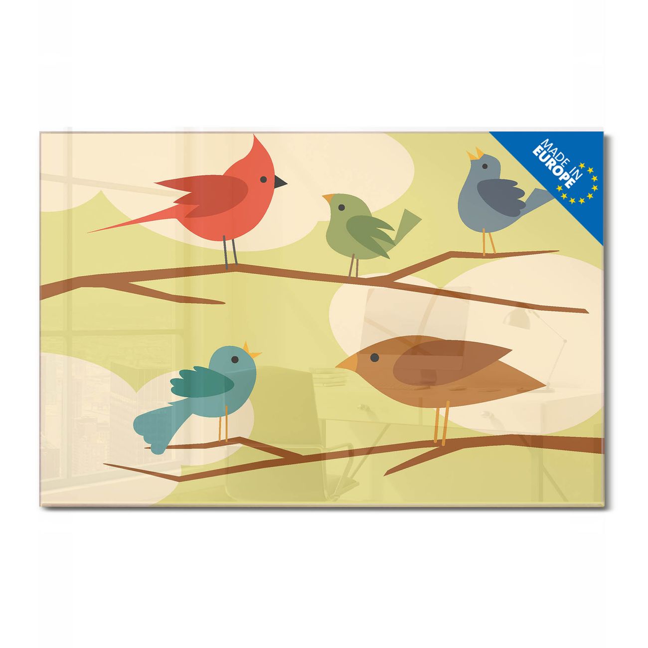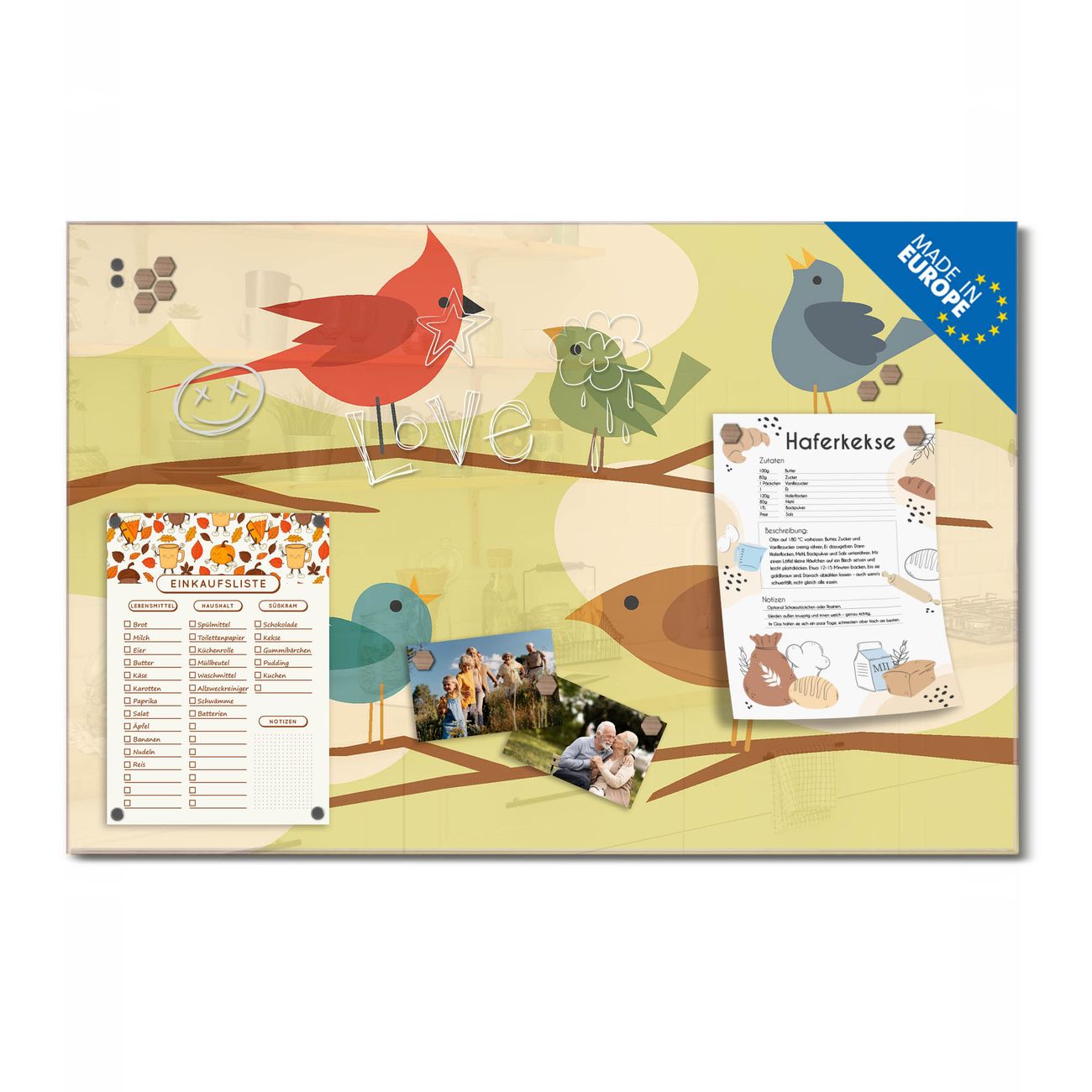 Glas Magnettafel im Querformat Motiv Fünf Vögel