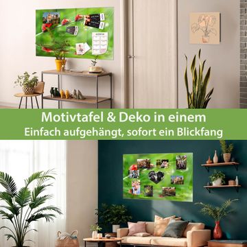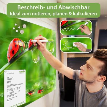Material: 4mm Sicherheitsglas mit Metallrückwand Eigenschaften: beschreibbar, magnetisch, kratzfest Maße: 45x30x0,6cm, 2,03kg schwer Motiv Nummer 10888 Für Jeden Einen  Zubehör: inklusive 4 Neodym-Magnete