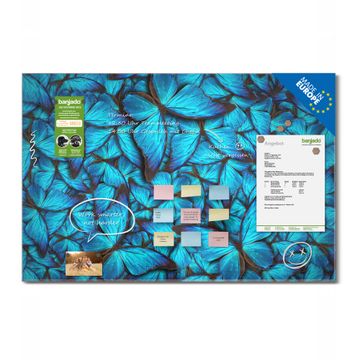 Material: 4mm Sicherheitsglas mit Metallrückwand Eigenschaften: beschreibbar, magnetisch, kratzfest Maße: 120x80x0,6cm, 14,40kg schwer Motiv Nummer 10726 Fürstliche Falter Zubehör: inklusive 4 Neodym-Magnete