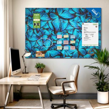 Die banjado Glas Magnettafel mit dem Motiv Motiv Fürstliche Falter verbindet Funktionalität mit Stil. Sie ersetzt das Zettelchaos durch klare Strukturen und bringt dabei eine warme, natürliche Atmosphäre in Ihr Zuhause. Ob im Büro, in der Küche oder im Eingangsbereich - dieses Design-Board zieht Blicke an und sorgt für Ordnung mit Charakter.