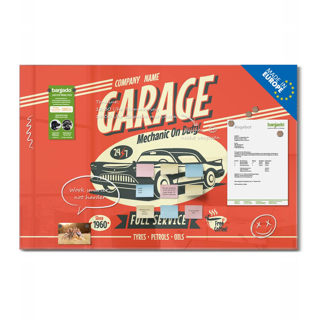 Material: 4mm Sicherheitsglas mit Metallrückwand Eigenschaften: beschreibbar, magnetisch, kratzfest Maße: 120x80x0,6cm, 14,40kg schwer Motiv Nummer 11152 Full Service Zubehör: inklusive 4 Neodym-Magnete