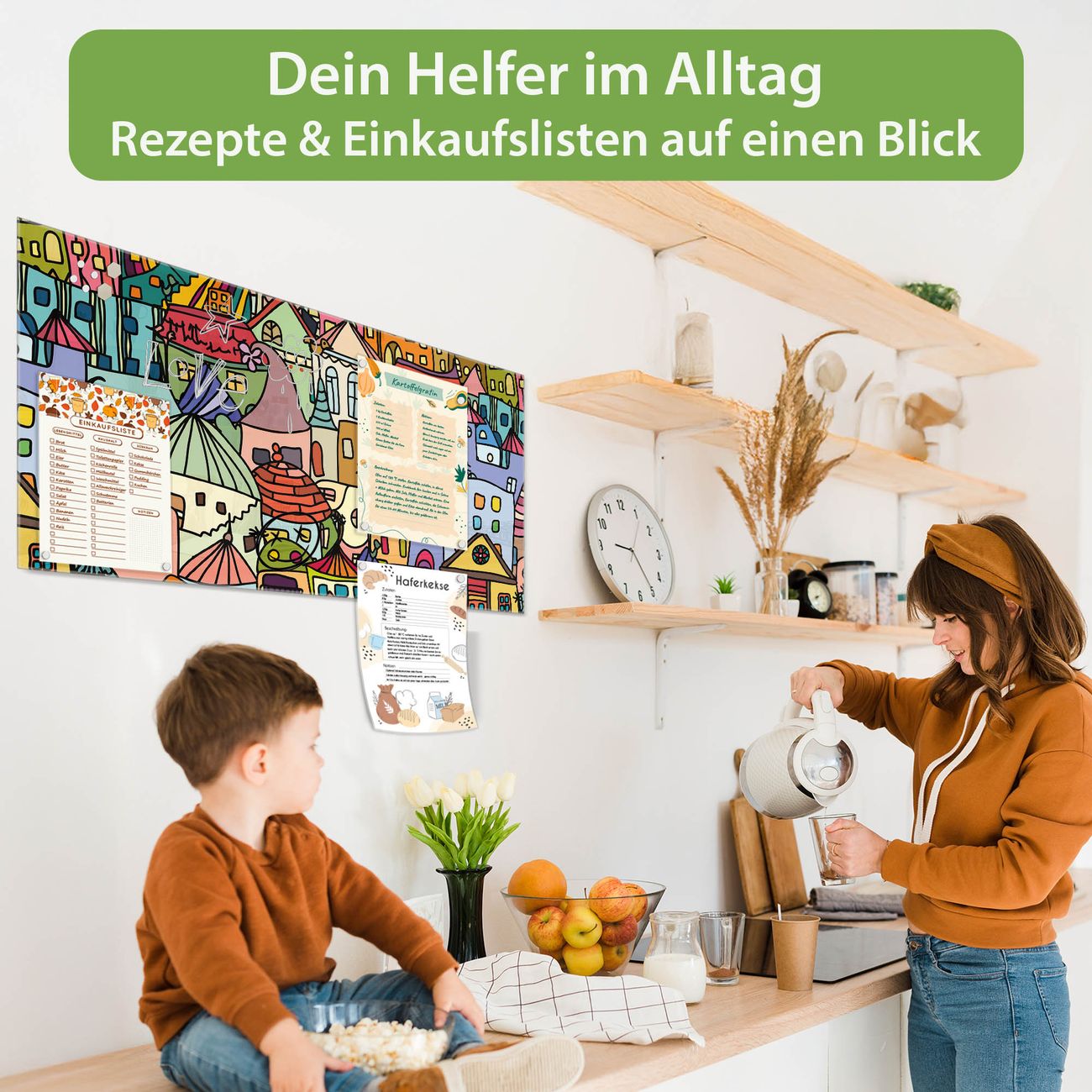 Die banjado Glas Magnettafel mit dem Motiv Motiv Funky Town verbindet Funktionalität mit Stil. Sie ersetzt das Zettelchaos durch klare Strukturen und bringt dabei eine warme, natürliche Atmosphäre in Ihr Zuhause. Ob im Büro, in der Küche oder im Eingangsbereich - dieses Design-Board zieht Blicke an und sorgt für Ordnung mit Charakter.