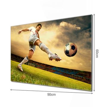 Material: 4mm Sicherheitsglas mit Metallrückwand Eigenschaften: beschreibbar, magnetisch, kratzfest Maße: 90x60x0,6cm, 8,10kg schwer Motiv Nummer 10172 Football Zubehör: inklusive 4 Neodym-Magnete