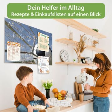 Auf der glatten Glasoberfläche lassen sich Termine, Rezepte oder Notizen ganz einfach mit Kreidestiften festhalten und rückstandslos entfernen. Starke Neodym-Magnete halten Ihre wichtigsten Erinnerungen sicher an Ort und Stelle. So entsteht Ihre ganz persönliche Ideenwand - jeden Tag neu.