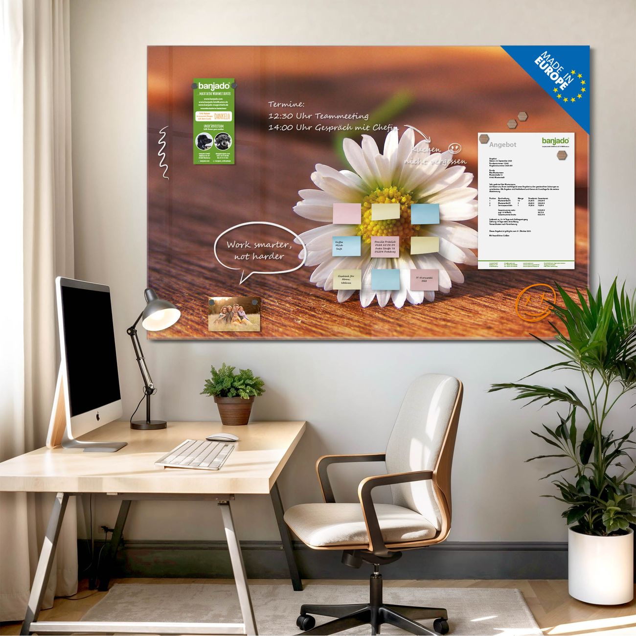 Glas Magnettafel im Querformat Motiv Gänseblümchen