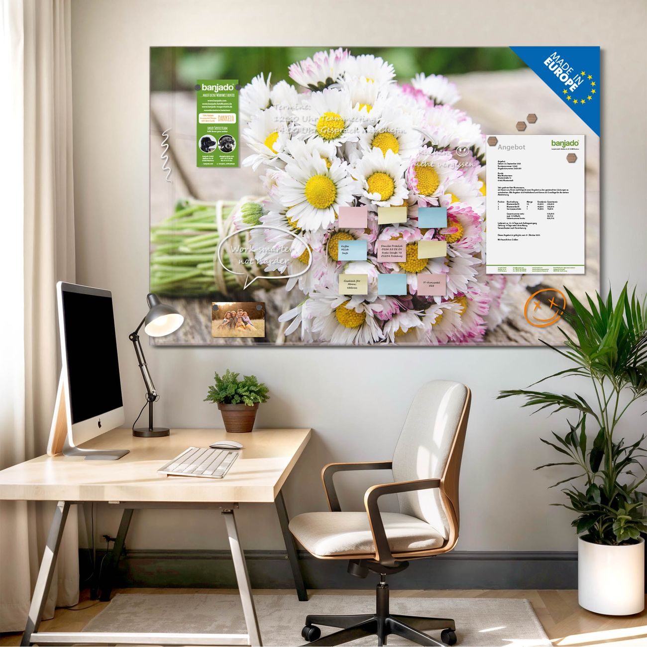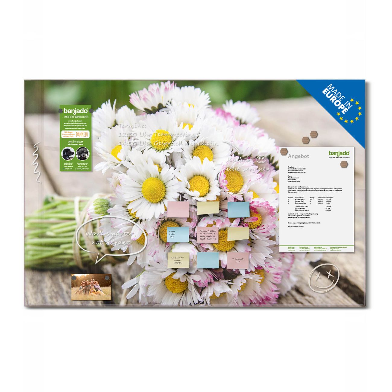 Glas Magnettafel im Querformat Motiv Strauß Gänseblümchen