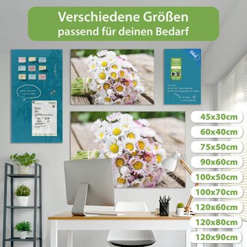 Die banjado Glas Magnettafel mit dem Motiv Motiv Strauß Gänseblümchen verbindet Funktionalität mit Stil. Sie ersetzt das Zettelchaos durch klare Strukturen und bringt dabei eine warme, natürliche Atmosphäre in Ihr Zuhause. Ob im Büro, in der Küche oder im Eingangsbereich - dieses Design-Board zieht Blicke an und sorgt für Ordnung mit Charakter.