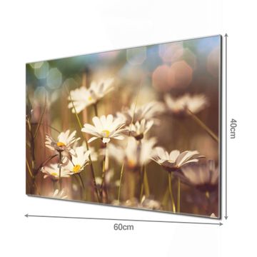 Material: 4mm Sicherheitsglas mit Metallrückwand Eigenschaften: beschreibbar, magnetisch, kratzfest Maße: 60x40x0,6cm, 3,6kg schwer Motiv Nummer 11403 Tausendschönwiese Zubehör: inklusive 4 Neodym-Magnete